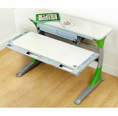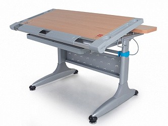 Удобная задняя полка-приставка и подвесной двухсекционный ящик создают легкодоступную зону хранения школьных учебников, тетрадей и принадлежностей. Впрочем, места с избытком хватит даже для установки монитора компьютера. Все расположенные на полке вещи никак не будут мешать изменению угла наклона столешницы или её высоты.