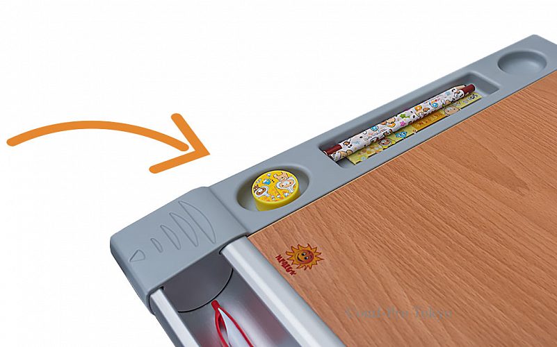 Благодаря задней приставке, рабочая поверхность столешницы значительно расширяется и позволяет легко расположить книги с тетрадями так, чтобы они не мешали занятиям малыша. Все же остальные школьные принадлежности легко поместятся в просторном выдвижном ящике и помогут обучить любимое чадо к порядку и организованности.