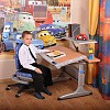 Но основной изюминкой данной модели можно назвать систему «газлифт», которая отвечает за подъём столешницы. С её помощью ребёнок легко сам сможет произвести настройку угла наклона, не прибегая к помощи взрослых. Вот так из простых и вполне очевидных дизайнерских решений вырисовывается общая картина уюта, комфорта и трогательной заботы о здоровье ребёнка.