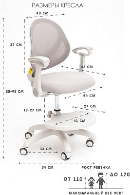 Детское кресло Holto-36 для детей от 3 лет и до подросткового возраста. Подходит для роста от 110 до 170 см. Можно использовать как с растущей партой, так и с обычной. Изменяя глубину спинки и высоту сидения, Вы подберете наиболее комфортное положение для ребенка. Колеса имеют функцию стоп-вращения при посадке в кресло человека свыше 25 кг. Малыш не будет отвлекаться от уроков, катаясь на кресле. Кресло имеет регулируемую подставку для ног, которую можно снять при необходимости.