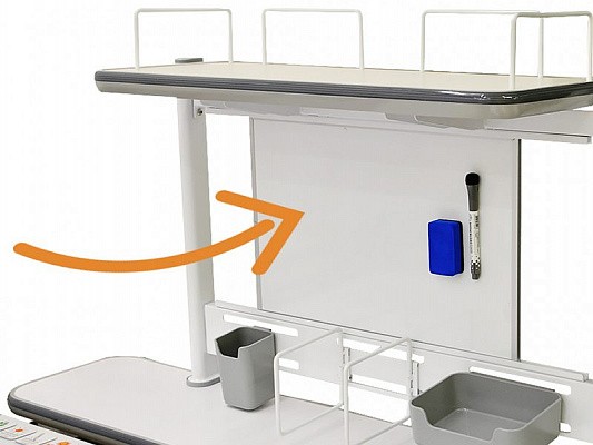 Полка также дополнена пластиковыми навесными пеналами для карандашей и прочих мелких канцтоваров. Пеналы изготовлены из прочного и безопасного ABS-пластика.