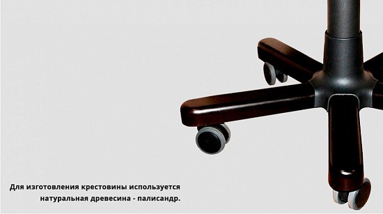 Внешняя спинка кресла выполнена из пластика, отделанного гнуто-клееным шпоном ручной полировки и тонирования. Форма кресла, напоминающая очертания виолончели в сочетании с уникальным рисунком под дерево подчеркивает благородство модели.