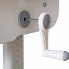 Высота стола регулируется с помощью червячного механизма ручкой, которую при сборке можно установить либо справа, либо слева.