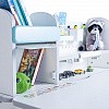 Помимо полок у надстройки есть очень удобный шкафчик, в котором ребенок может хранить свои вещи. Дверца шкафчика открывается наверх, а для удобства – на дверце есть специальные отверстия для пальцев. Теперь все школьные принадлежности точно будут в порядке.