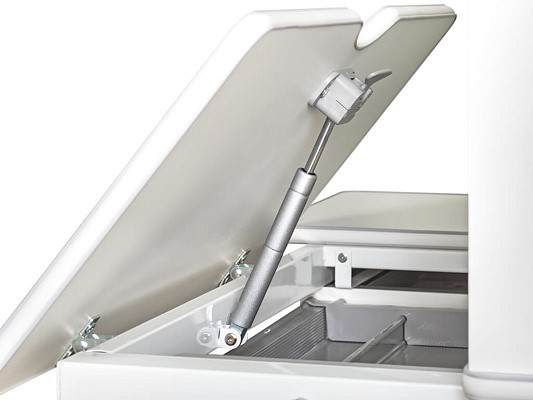 Под подвижной частью столешницы размещен выдвижной органайзер их прочного и безопасного ABS-пластика.