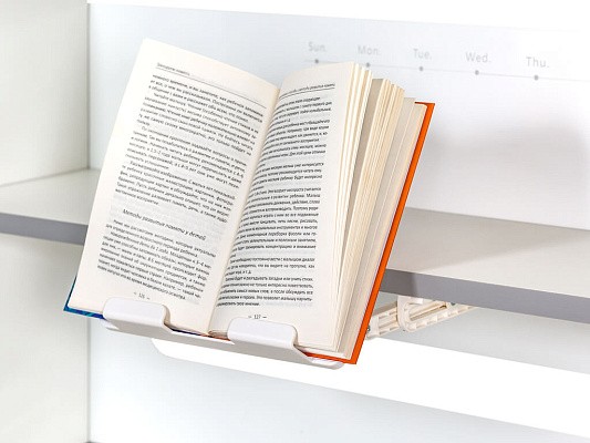 Регулируемая подставка под книгу меняет угол наклона. За ненадобностью подставка легко убирается внутрь стола.