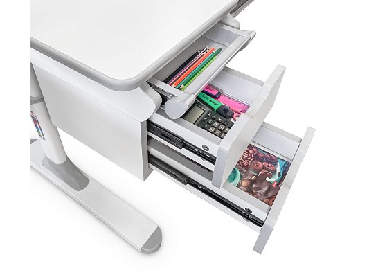 Наличие съемного прорезиненного барьера на столешнице предотвращает скатывание предметов во время выполнения домашнего задания.