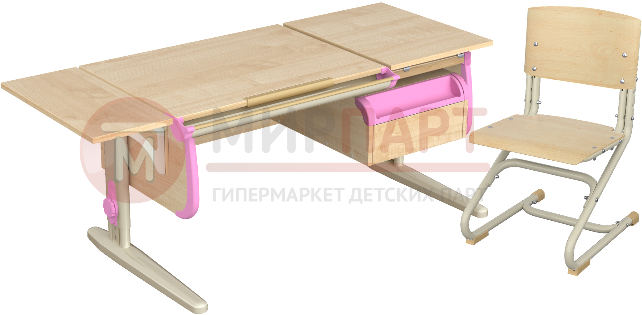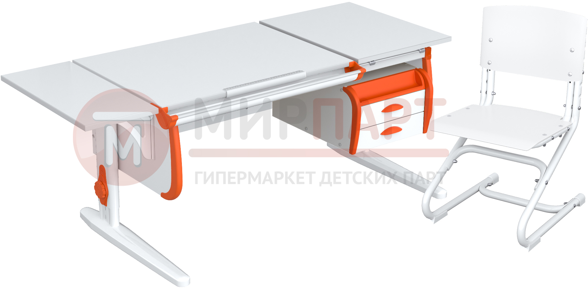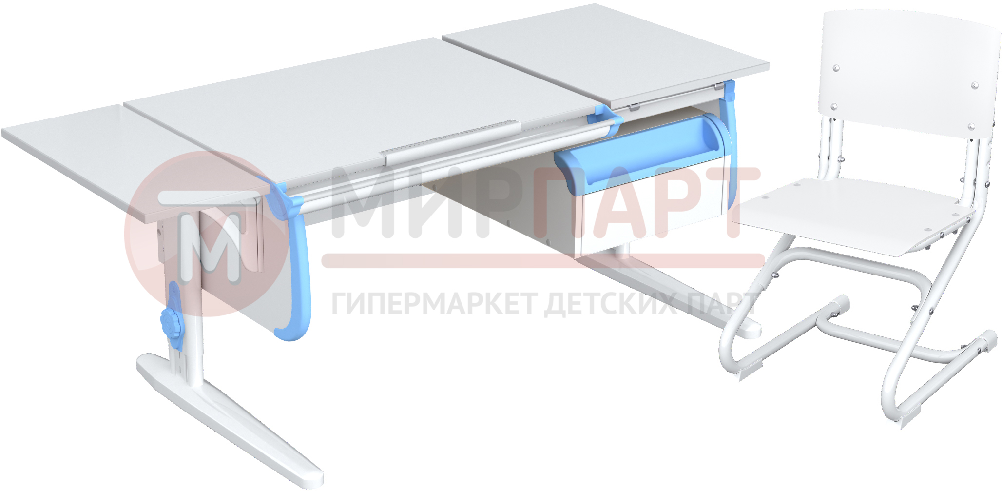 Парта 120 см с раздельной столешницей + тумба + короткая боковая приставка 55 см